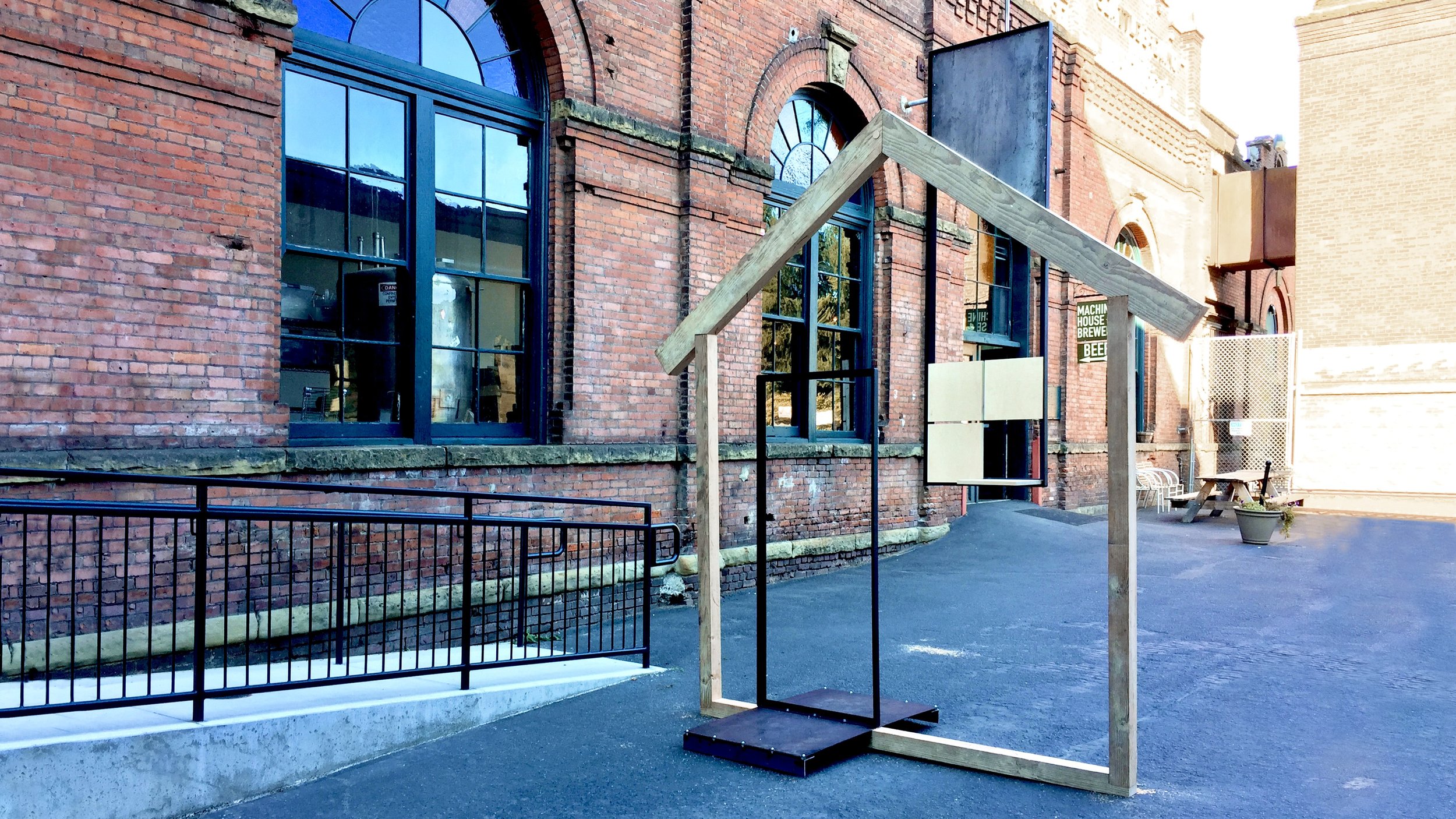 We built an abstract form referencing the iconic “house” shape—simple, familiar, and immediately recognizable. Set within an industrial streetscape, the piece was designed to catch attention, invite curiosity, and start a conversation. It stood as both structure and prompt: a visual nudge to consider what home means, how we define space, and how architecture communicates identity.